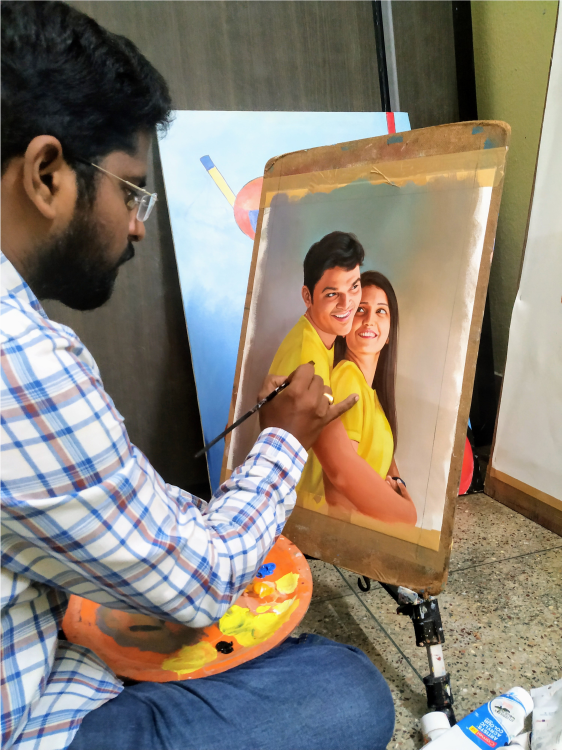 Here’s a great collection of some extremely vibrant and aesthetically pleasing artworks of Hari, that range from modern oil paintings, wall paintings, digital arts, portraits, pencil sketches of landscapes, children, politicians, celebrity figures, couples, individuals, and many more. Take a look at it and get one done for you.