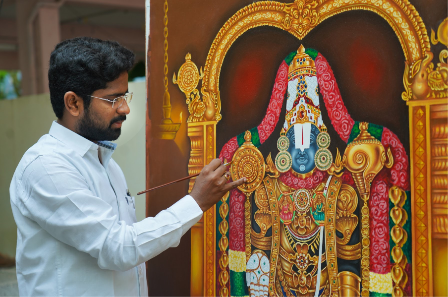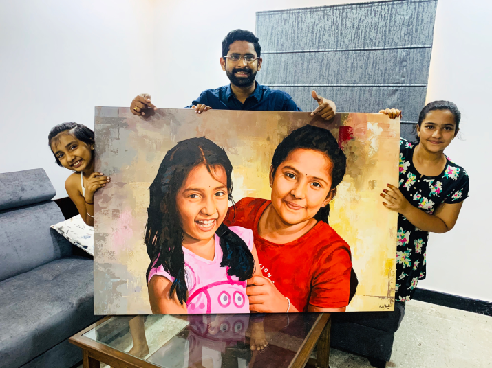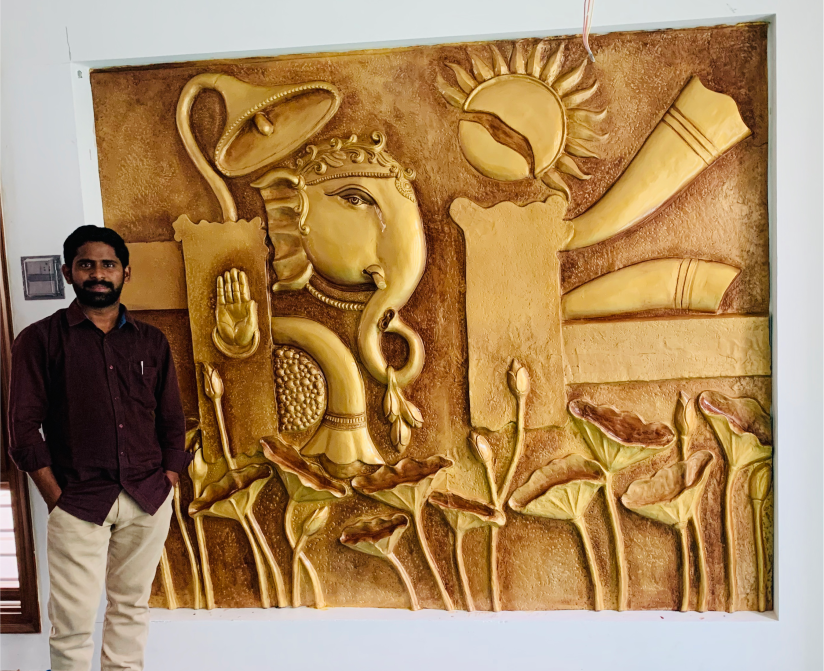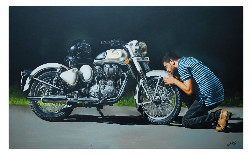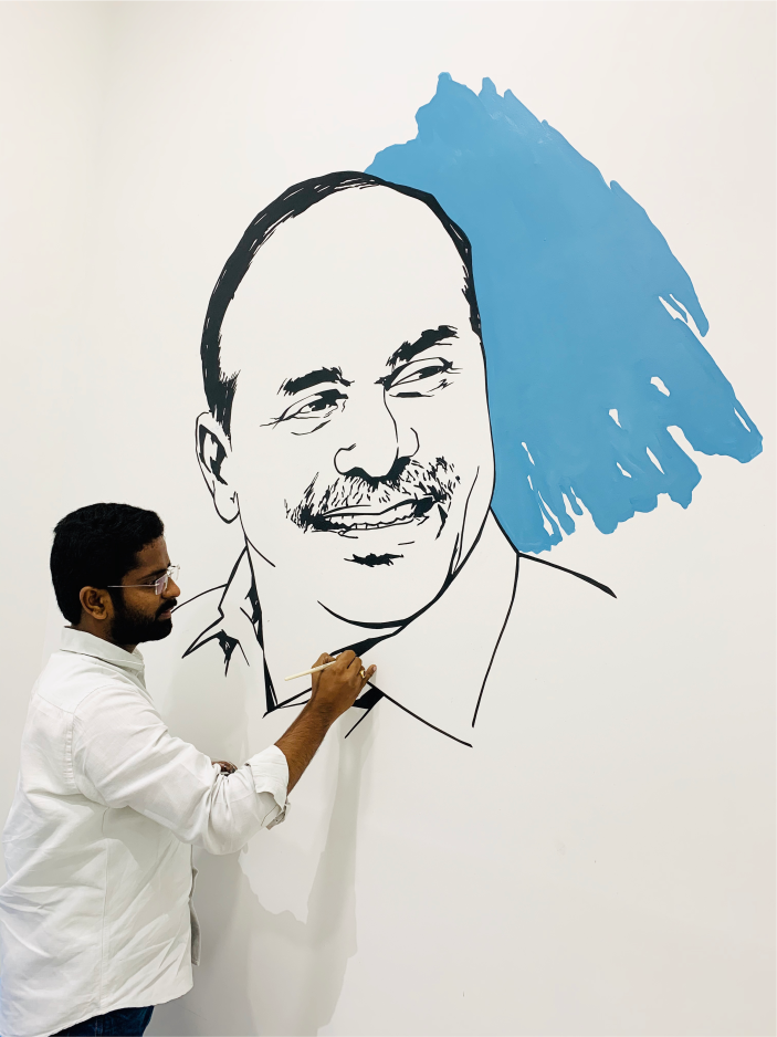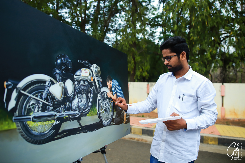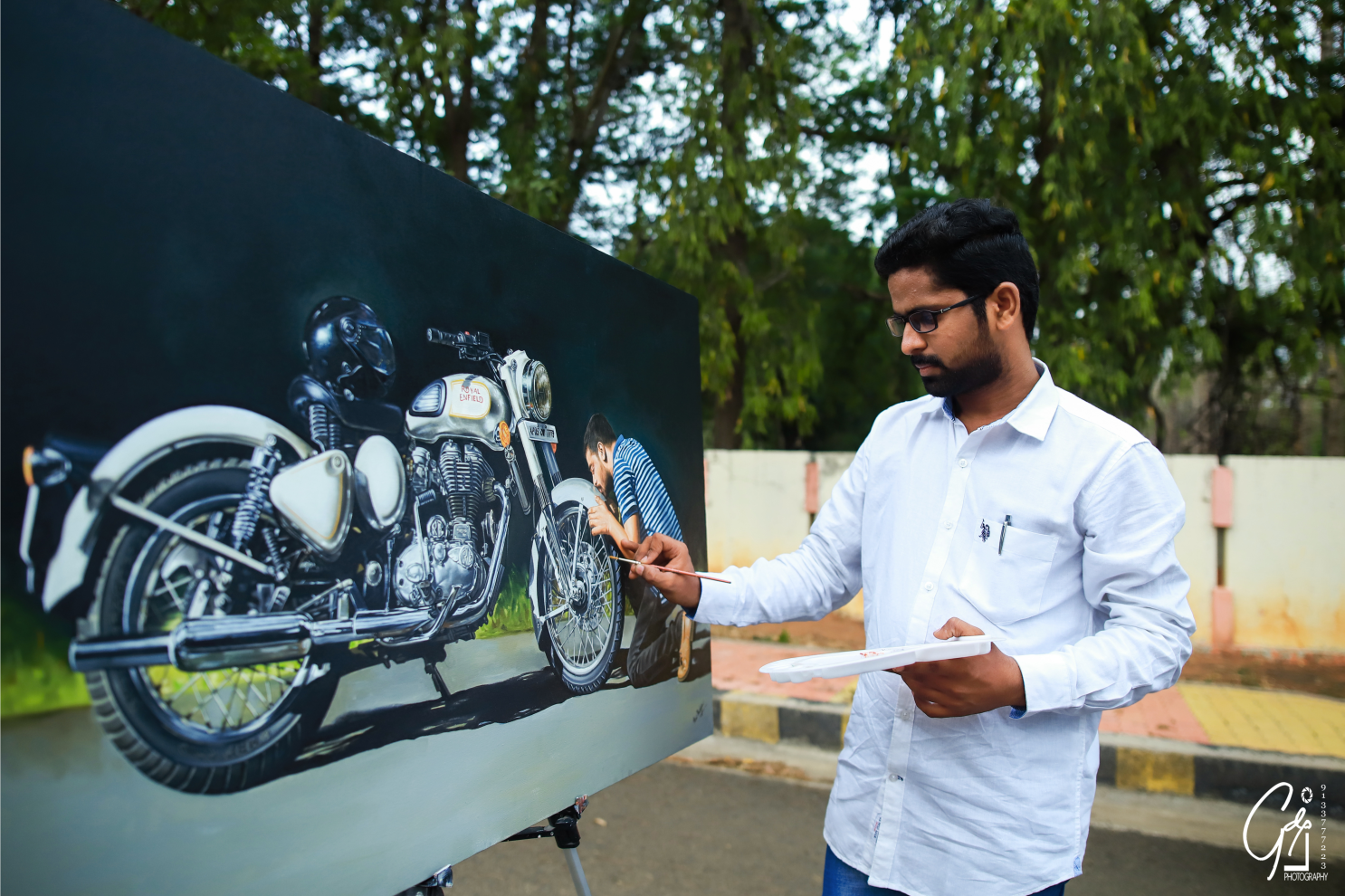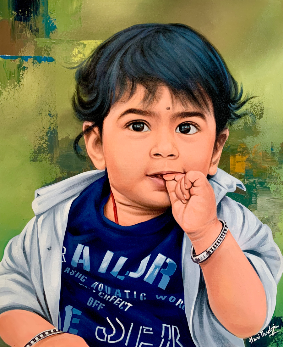 Born into a modest family, Hari Thadoju is known for his spellbinding modern and abstract oil paintings, wall mural paintings, portraits, and sketches that capture the world with a joyful poise. He is the elder son of his father, Suryanarayana, who’s been an artist and sculptor at Rajahmundry for many years. During his childhood, Hari’s father could rightly catch sight of his curiosity to learn new things and that’s where his journey to learn new artforms has begun. His father being his first GURU, helped in laying a strong foundation for his art career.